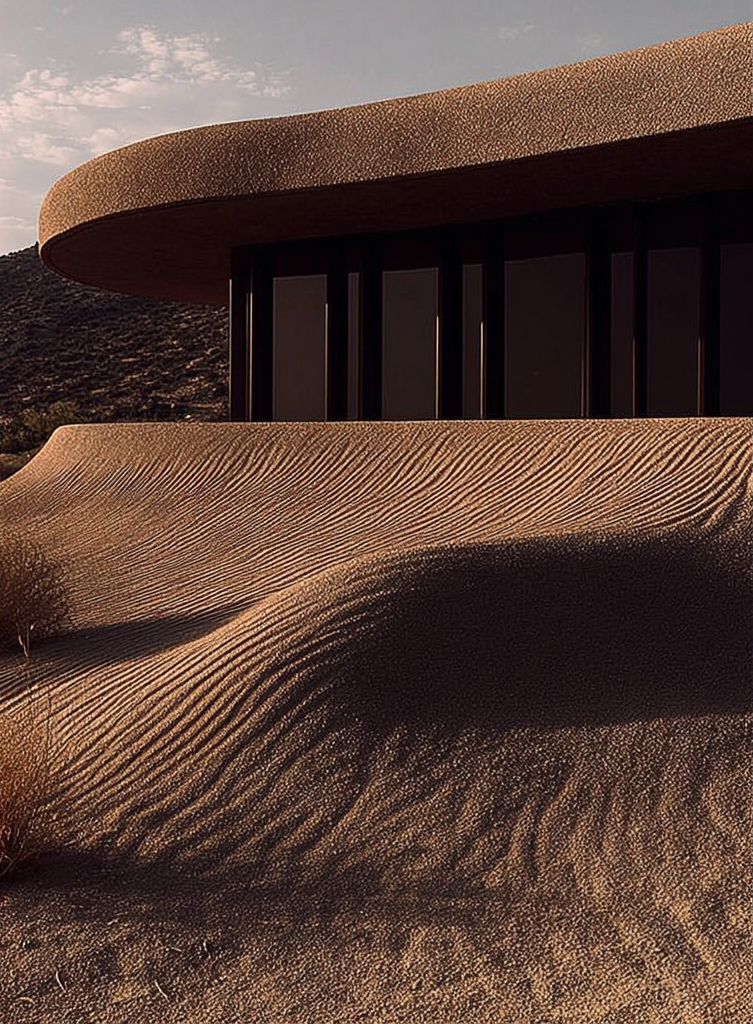 CASA DUNA — MALLORCA Sandstone cladding sourced in Binissalem, Mallorca. A structure rising from the terrain with quiet force. Roof traced at iteration 61